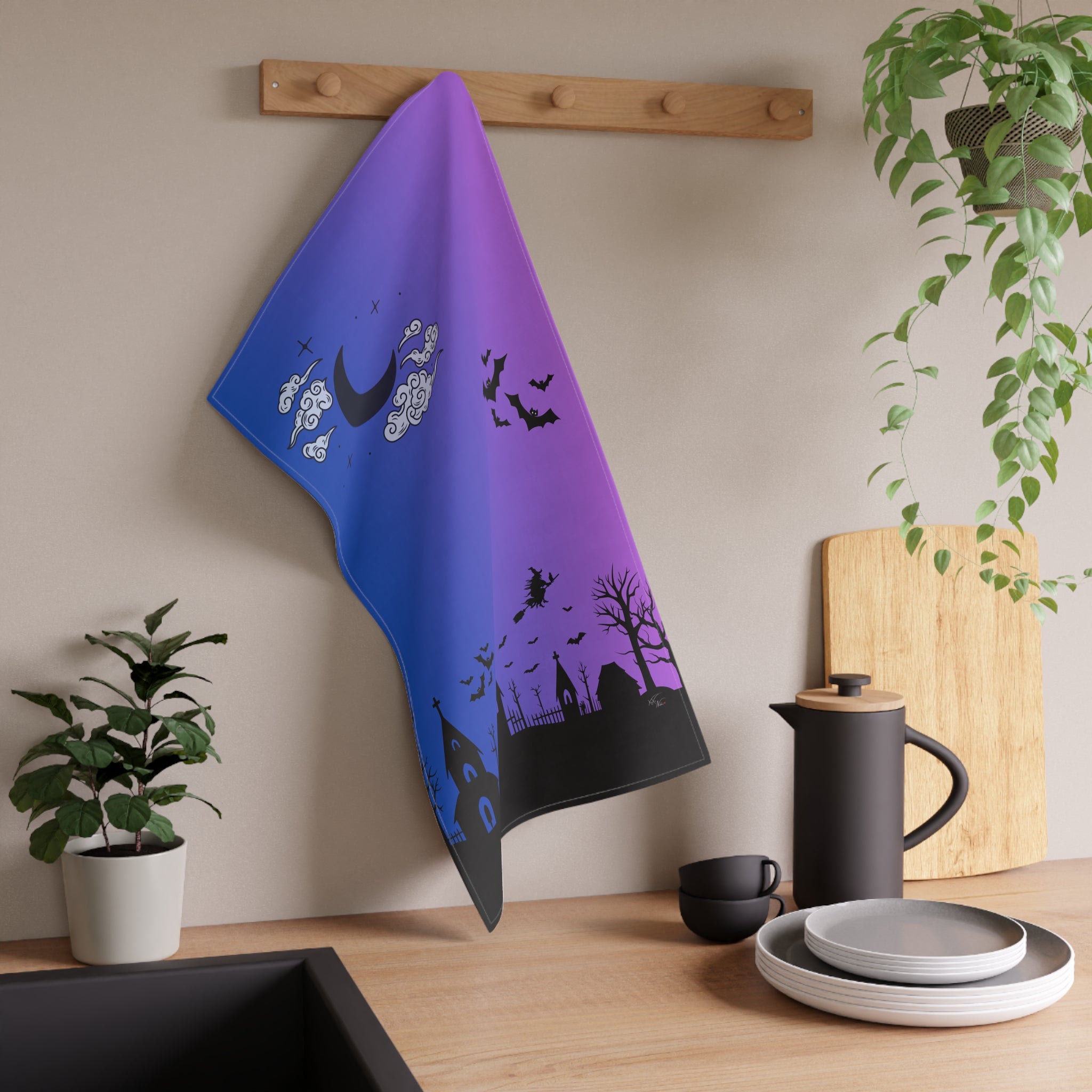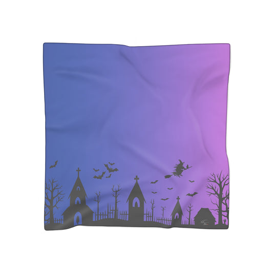 π¦ Haunted Dusk Halloween Scarf β Purple & Blue Gradient Spooky Graveyard Print π§£β¨
